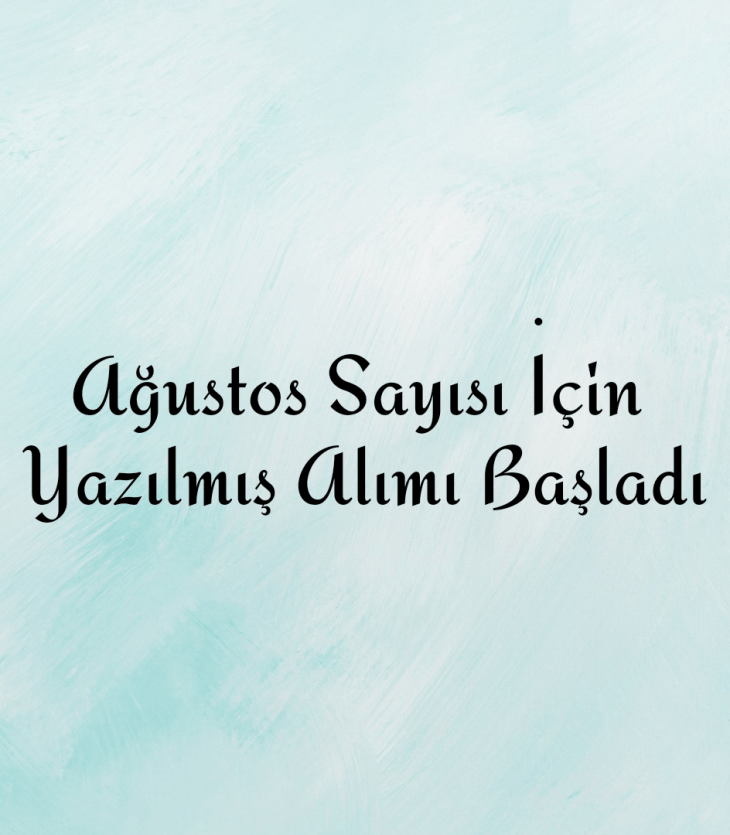 Mart ayında basılacak olan İlkyaz Sayımız için yazı alımı başlamıştır. Times New Roman yazı tipinde,…